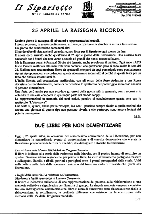 - 10 - 25 aprile: pagina 1 - 2 - 3 - 4 - 5 - 6