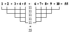 1+2+3+4+5+6+7+8+9+10 = 55